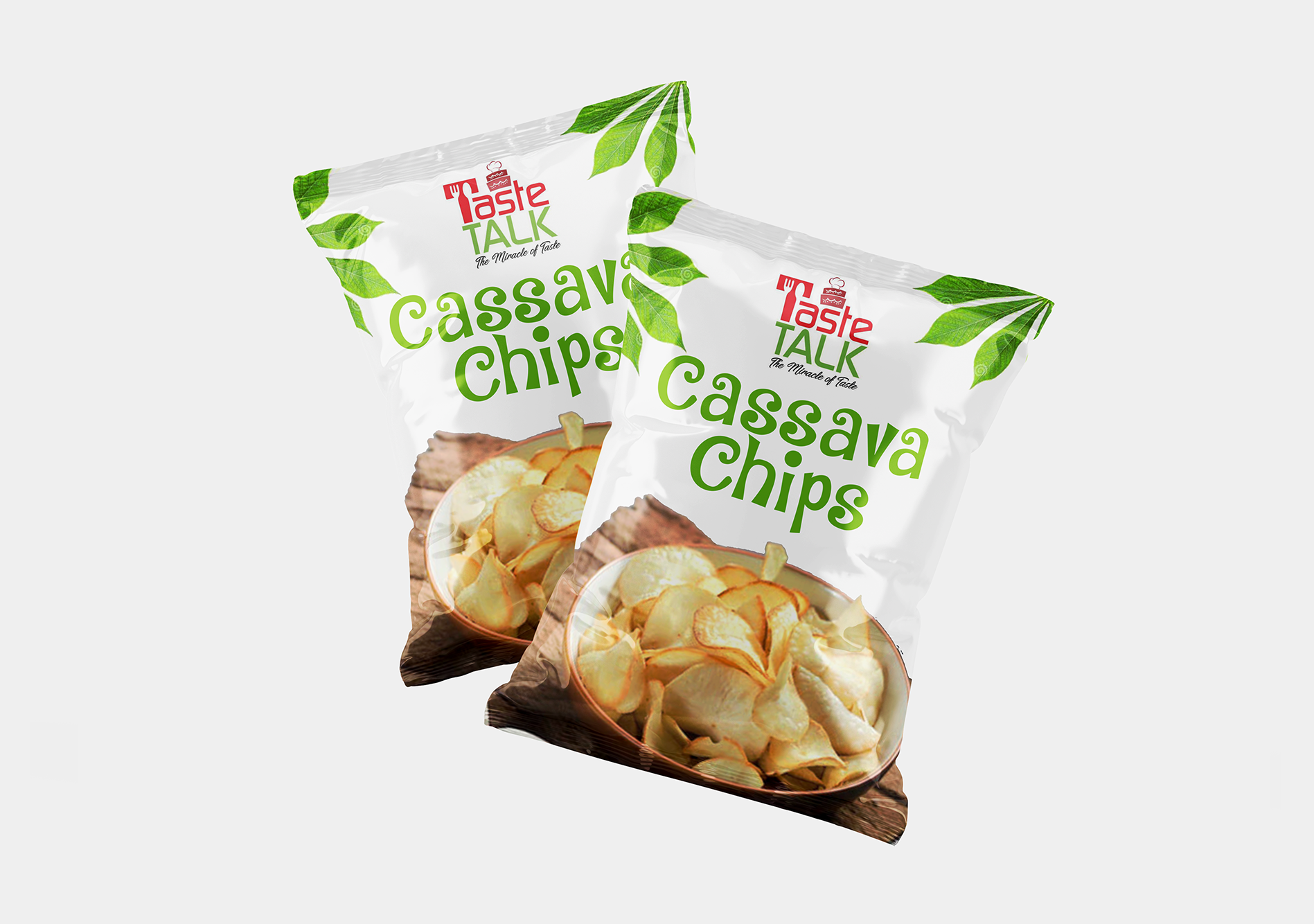 The packaging for their new Fried Cassava Chips! Combining vibrant green cassava leaves and real images of the crispy delight, the design exudes natural freshness. With a clean white and fresh green palette, elegant typography, and seamless brand integration, this packaging not only captivates the eye but also conveys Taste Talk's commitment to quality and flavor. A harmonious blend of aesthetics and functionality, it's a snack-worthy visual treat